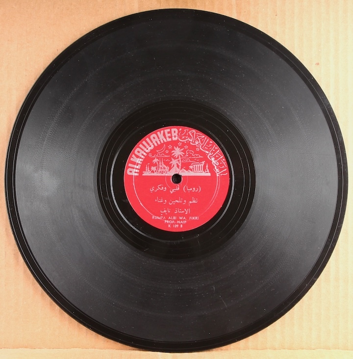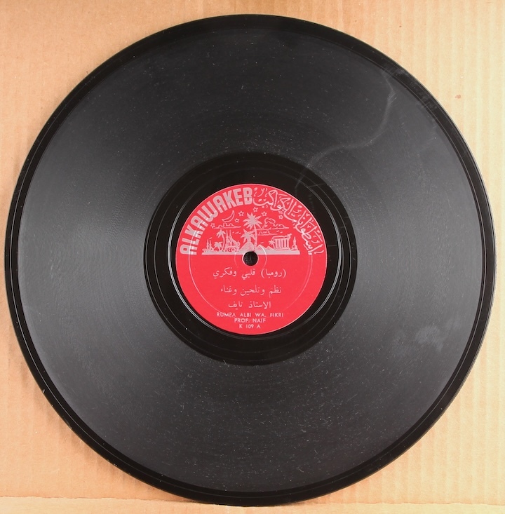 Arabic vocals with instrumental accompaniment. Plays loud and strong though some light surface noise.
