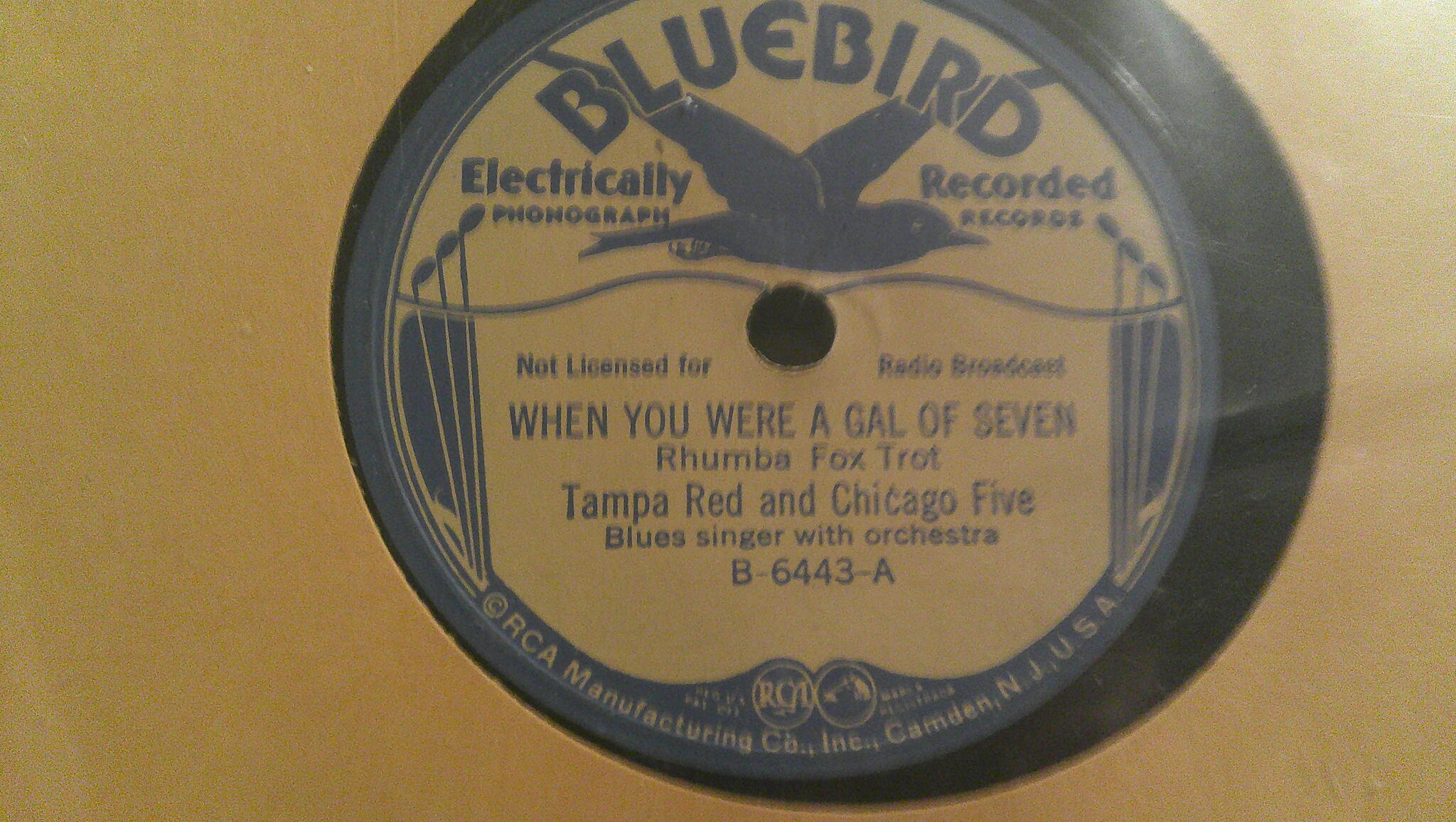 An uptempo blues from Tampa Red, with his vocal supported by a kazoo, piano and drumming. Record condition is NM.