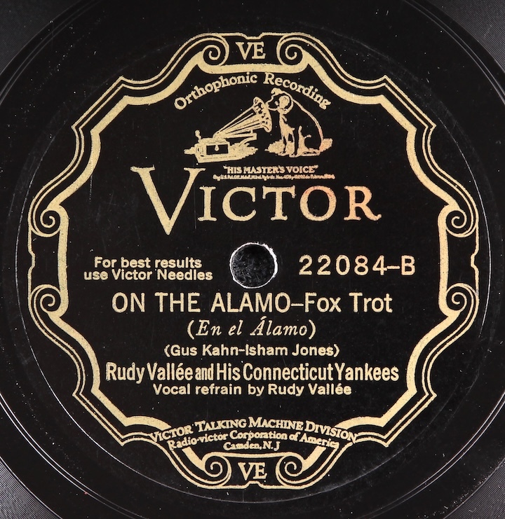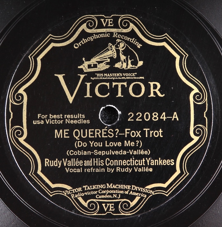 Fine copy of iconic 20s/30s crooner, Rudy Vallee and His Connecticut Yankees. Plays great, nice quiet surface.