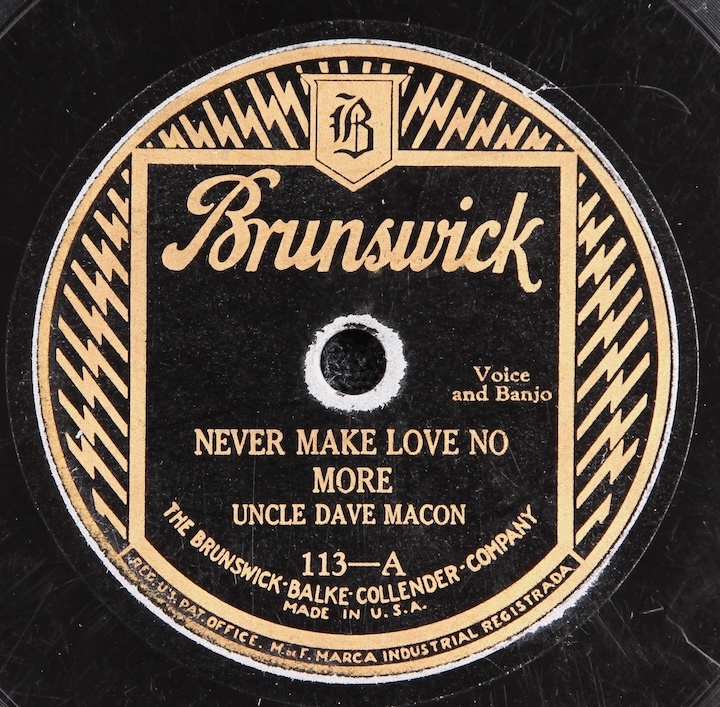 Pioneer hillbilly music legend Uncle Dave Macon. Plays loud and strong, light to moderate surface noise throughout.
